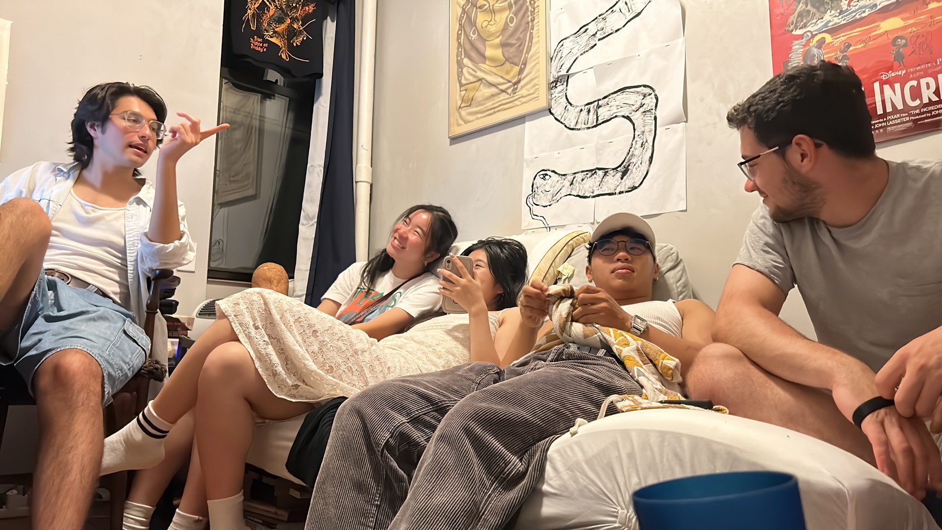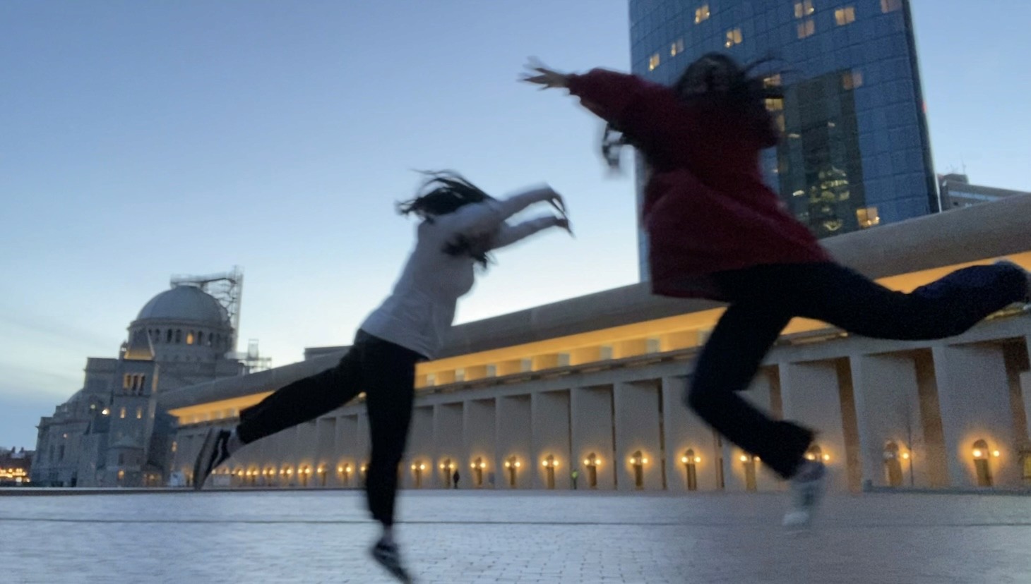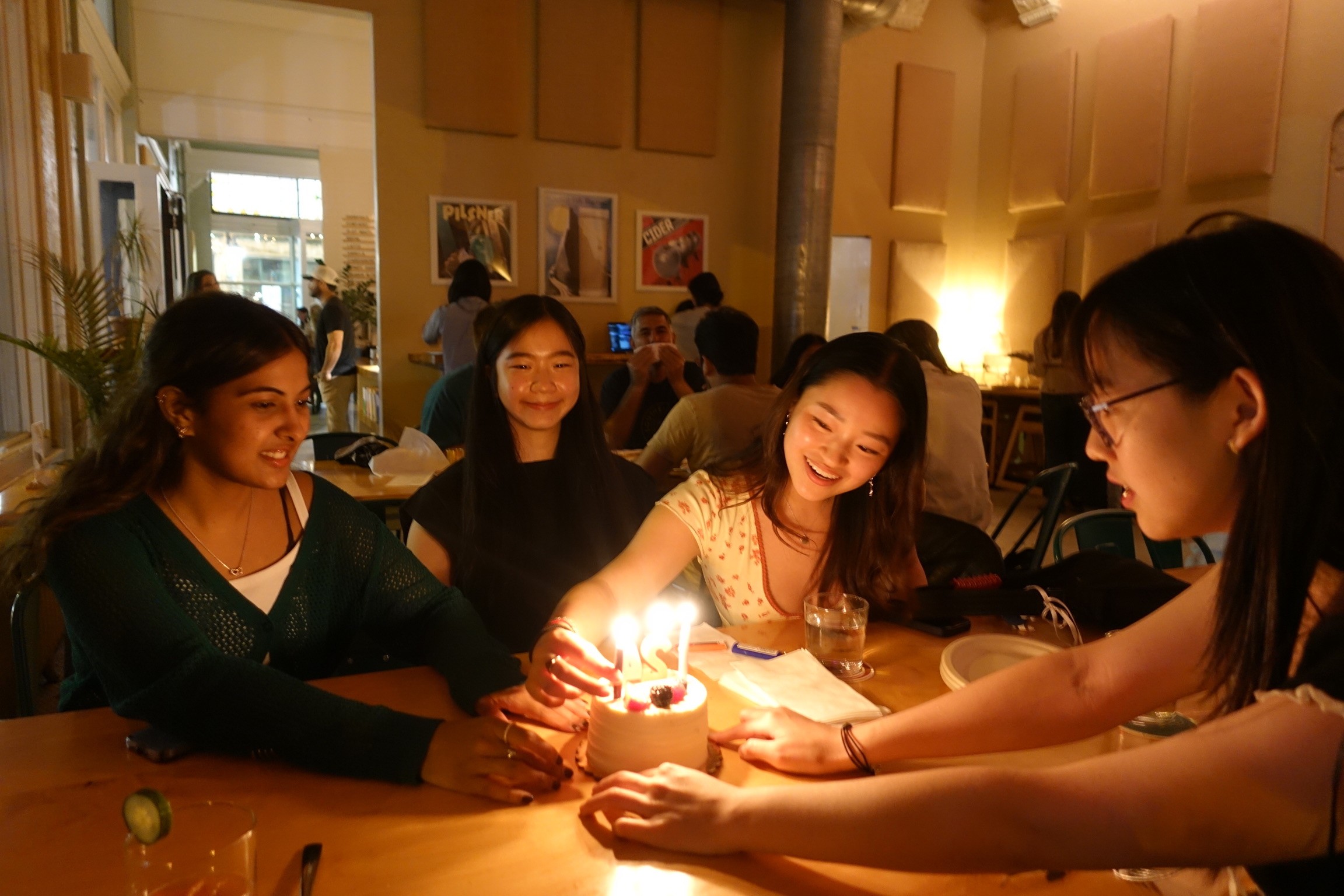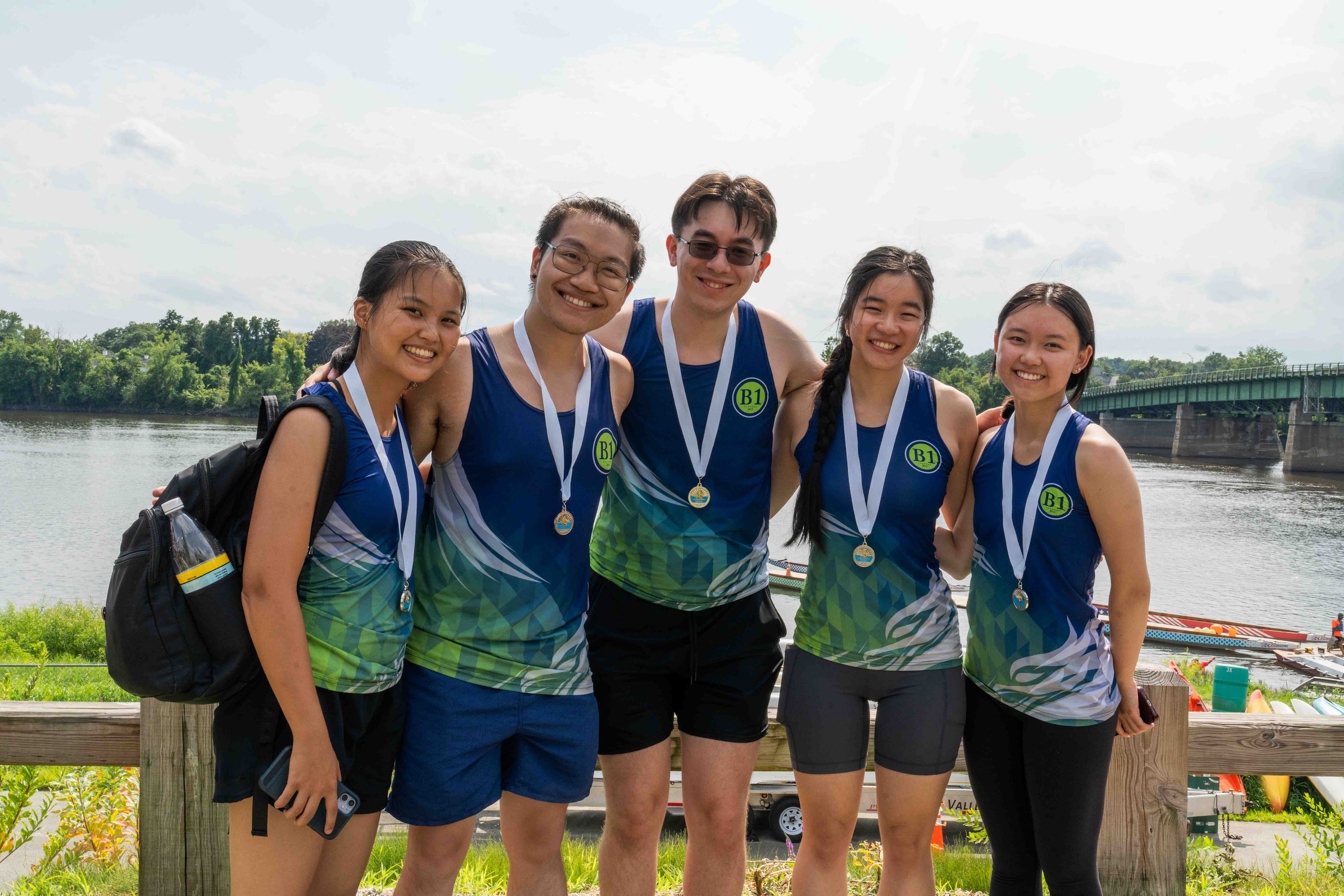 Pictured: Jyaleen Wu holding a nutcracker and dragon boat paddle. Ddolbyeong flies above her right shoulder. In the background we see Godzilla wading in the San Francisco Bay.
